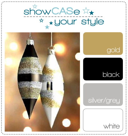 Our theme for challenge #2 is a color challenge of gold, black, silver. and white. Please use the colors from the image below as inspiration to create your CAS card.